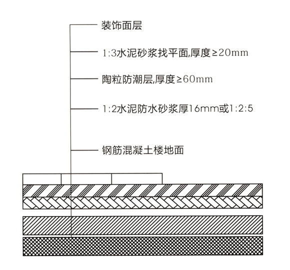在清洗好的樓地面基層上找素水泥漿一道后,隨即抹防水砂漿,或用1:2.5水泥砂漿抹平后再做防潮層。拌制陶?;炷燎?,先用水濕潤(rùn)陶粒,然后再摻入水泥拌合均勻,并嚴(yán)格控制用水量,以不淌漿能包裹陶粒表面為宜,且應(yīng)隨拌隨鋪。陶粒混凝土防潮層如埋設(shè)管道,其管道周圍應(yīng)先用水泥砂漿或細(xì)石混凝土固定穩(wěn)固后再鋪設(shè)。陶粒鋪設(shè)后應(yīng)用木赤分層趕平,木拍拍實(shí),抹平至設(shè)計(jì)厚度和坡度。陶粒防潮層鋪設(shè)完成后應(yīng)注意養(yǎng)護(hù),養(yǎng)護(hù)期間嚴(yán)禁在表面上行走、操作、拖拉工具雜物等,并待期強(qiáng)度達(dá)到70%或至少三天后方可進(jìn)行下一道工序施工。